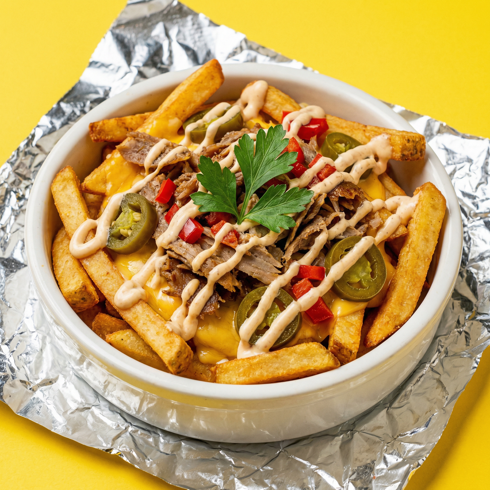 Sour Cream, Doritos, Coriander, Mince Patty, Salsa, Guacamole, Jalepenos, Red Chilli Garnish, Cheese Sauce